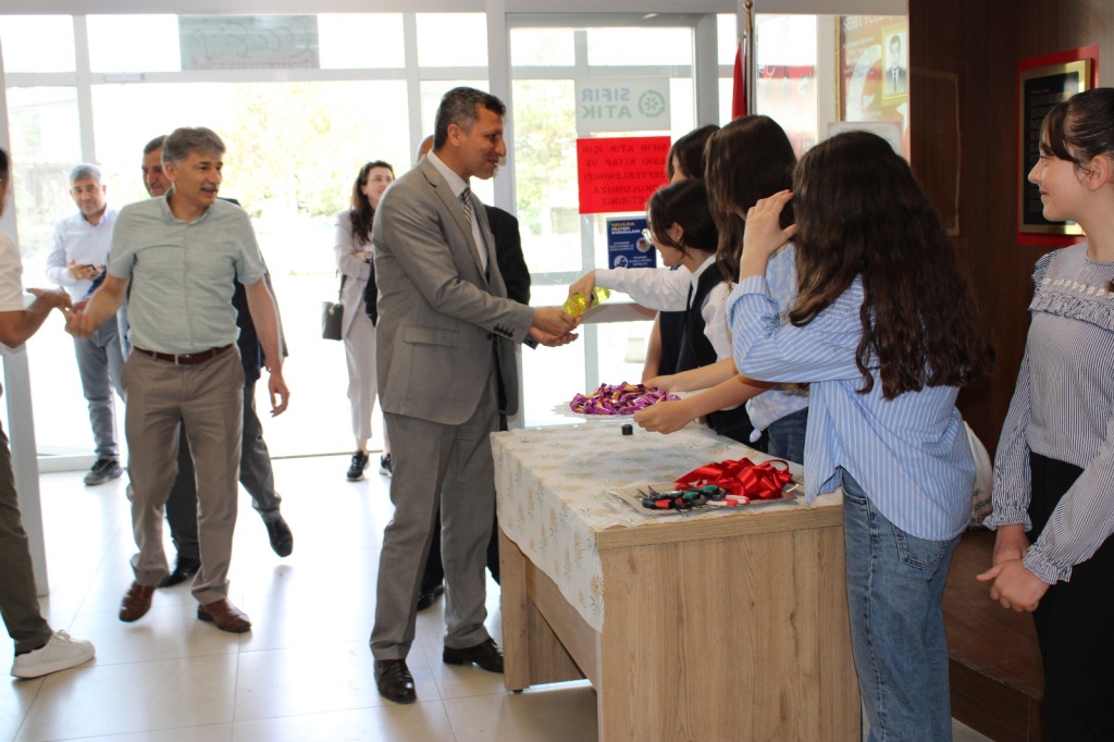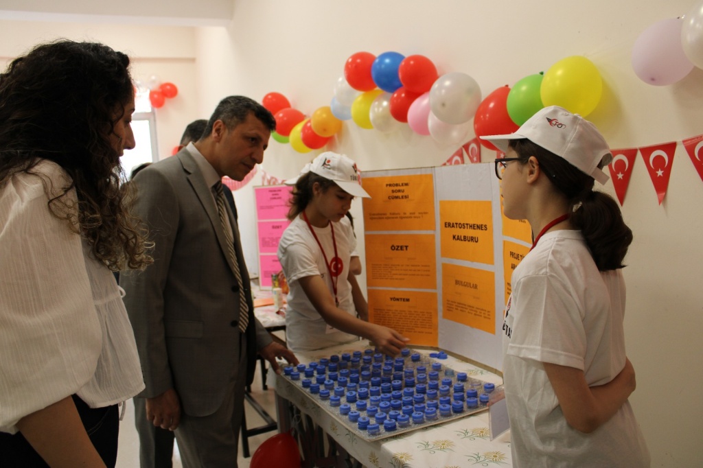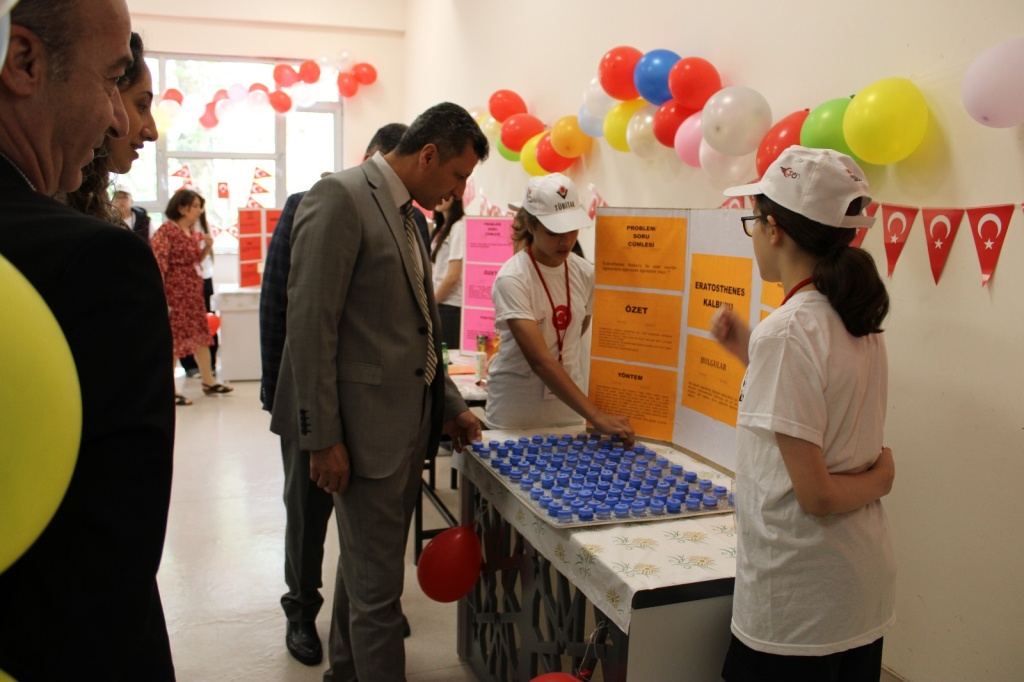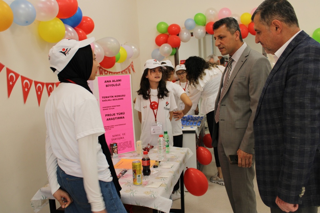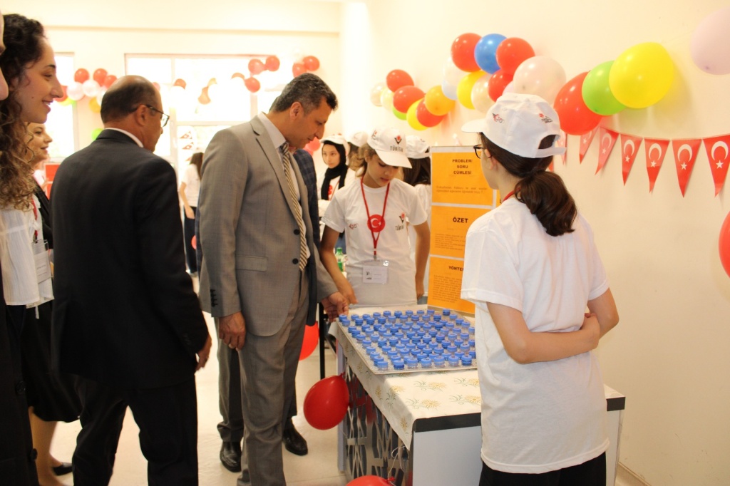 Okulumuzda bilim fuarının açılışını yapmak üzere sayın İlçe Milli Eğitim Müdürümüz Ali TAŞTAN, Şube Müdürlerimiz Fazıl DUYMAZ,Serdar FIRAT, Okulumuz İdaresi Said KALPAK,Orhan DOĞRUER,Tubitak yürütüsü Seher YETGİN ve Okulumuz Öğretmen ve Öğrencileri hazır bulundu. Kurdele kesimi ile başlayan fuarımız 2 gün boyunca ziyaretçilere açık kaldı.